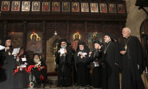 Greek Orthodox Patriarch John Yazigi (C) leads a prayer at the Balamand Monastery in Koura, near the north Lebanese city of Tripoli, to call for the release of bishops kidnapped in northern Syria in April, June 22, 2013. (photo by REUTERS/Omar Ibrahim)