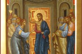 But we recall that not long ago, just a week before, these very same Apostles fled from Christ’s Cross and did not follow Him to the end. Nonetheless, Christ comes to them. He comforts them and gives them the Holy Spirit and the power to remit sins. They receive the signs of their priesthood, the first signs of true apostleship.
