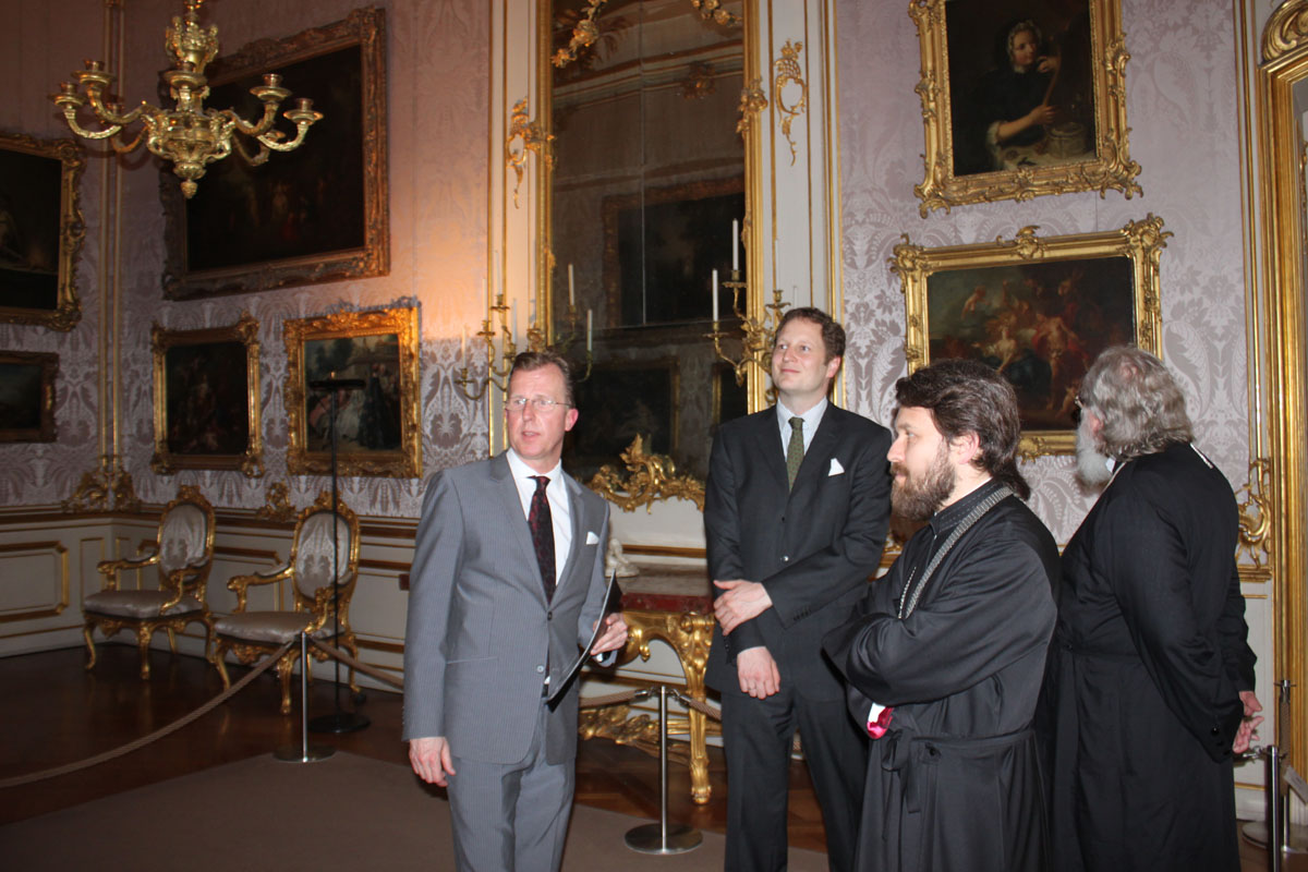 Taking part in the talk were also Archbishop Feofan of Berlin and Germany; Archbishop Longin of Klin, representative of the Russian Orthodox Church in Germany; archpriest Sergiy Zvonarev, DECR secretary for far abroad countries; Ms Michaela Blankart, director of the general administration of the House of Hohenzollern; and Mr. Ulrich Feldhahn, art curator of the Hohenzollern Palace.