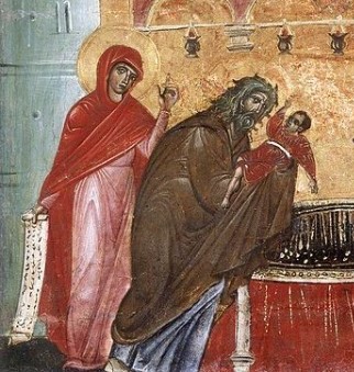 The Feast of the Meeting of Christ in the Temple (February 2/15) is a feast of the elderly. When the Holy Family entered the Temple courts to offer the required sacrifice for the purification of Mary after her giving birth to Jesus, her Son was recognized as the Messiah by only two people, picked out by the power and illumination of the Spirit from all the multitudes of people swarming through the holy courts, and these two were very elderly. Christ was practically a newborn (little over forty days old) and His Mother was young herself, probably about fourteen years old. But the two people who identified them as the Messiah and His Mother were themselves “well stricken with age” (as the phrase has it), so that fresh-faced youth collided with the wrinkled faces of the elderly.