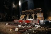 It’s described as a ghost town; many buildings have been completely flattened and those that remain have been burnt out and looted. Other churches, too, have been destroyed. The Mart Shmony Syriac Orthodox Church in Bartella is left charred by a fire. When church leaders returned, inside the church pews were overturned, and hymn books and Bibles had been torn apart and thrown on the floor.