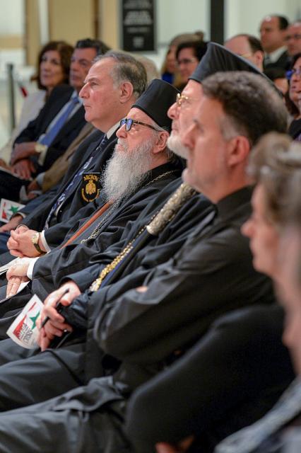 His Eminence Archbiship Demetrios of the Greek Orthodox Archdiocese of America and His Eminence Metropolitan Joseph of the Antiochian Orthodox Christian Archdiocese of North America were in attendance and offered Archieratical responses to Mr. Laham’s multimedia presentation. The lecture was sponsored by the Order of St. Andrew, the Order of Saint Ignatius of Antioch and the IOCC as the relief agency of the Assembly of Bishops.