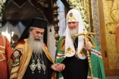 In his response, the Primate of the Church of Jerusalem noted in particular that during his visit to the Russian Orthodox Church, he was met with brotherly hospitality. ‘Our fraternal relations, contacts and cooperation in Christ, which become increasingly close from day to day, have reached today its culmination as we celebrated the Divine Liturgy together with Patriarchs and an assembly of hierarchs’, he said.