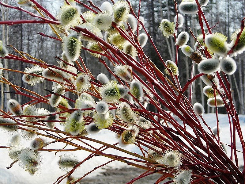A mere few days before His crucifixion, Jesus Christ was received by adoring throngs at his entry into Jerusalem on the back of young donkey. The crowds threw palm branches (a symbol of victory) in his path in jubilation, and even the children shouted praises to Him. The Orthodox celebrate this day with joy, but with the realization that very sad events are soon to come. Orthodox peoples who live in areas without palms, including the Russian Orthodox, use pussy willow branches rather than palms in the celebration of this event. Therefore in Russian Church this feast and is called Вербное (Pussy Willow) Воскресенье (Sunday). Some churches give small crosses made of palms at the end of the service and are then kept in the home icon corner.