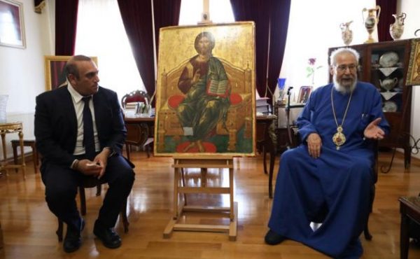 A valuable 16th-century icon of the Savior on the Throne, stolen from the Church of Christ Antiphonitis in the village of Kalograia (Kyrenia district, Northern Cyprus), was returned to the Cyprus Museum. After inspection by the restorers, Minister of Transport, Communications and Public Works, Yiannis Karousos, handed over the icon to Archbishop Chrysostom of Cyprus on July 12, 2022, reports orthodoxianewsagency.gr.