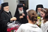 Among those present at the welcome were the Consul General of Greece in Boston Ifigeneia Kanaras; Rev. Fr. Nicholas Triantafillou, President of Hellenic College Holy Cross School of Theology; Dr. Thomas Lelon, Vice-Chair of the School’s Board of Trustees; Rev. Dr. Thomas FitzGerald, Dean of Holy Cross; Rev. Fr. Theodore Barbas, Chancellor of the Metropolis of Boston; many members of the clergy and laity of the area, and students from Holy Cross, who also chanted the feme of the visiting Hierarch.