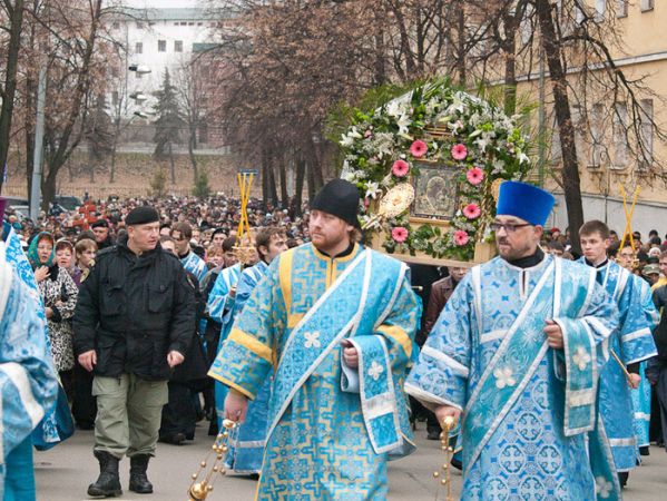 Moreover, there is a longstanding tradition of performing a large procession in the center of Moscow on the day of the Kazan Icon of the Mother of God. Processions are an expression and manifestation of a special spirit of unity among people gathered for a higher purpose. It is not an idle, haughty, or random gathering at a rally, but a procession – during which demons flee in horror from the holy things born aloft and from the collective prayer, while the earth is invisibly but effectively sealed by grace!