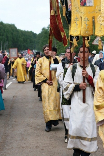 The Velikoretskiy procession is the most ancient, famous, massive, and majestic of all the Vyatka processions. It begins on June 3 from the St. Seraphim Cathedral of Kirov, and then goes through the villages Makarye, Bobino, Zagarye, Monastyrskoe, and Gorohovo. The final destination is the Velikoretskiy village, where molebens are held in churches and on the Great River’s banks. The pilgrims return through the Medyany and Murygino villages and arrive on June 8 in Kirov.