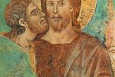 Similarly, other hymns chanted this evening contemplate unblinkingly the horror of Judas’ betrayal. The following example is terrifying in its use of contrasts to contemplate that betrayal.